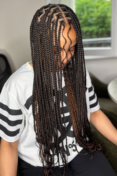 Braids, vanilles, twists, tissages, extensions ou coiffures événementielles : chaque style est réalisé avec précision et patience, pour un résultat chic et durable.